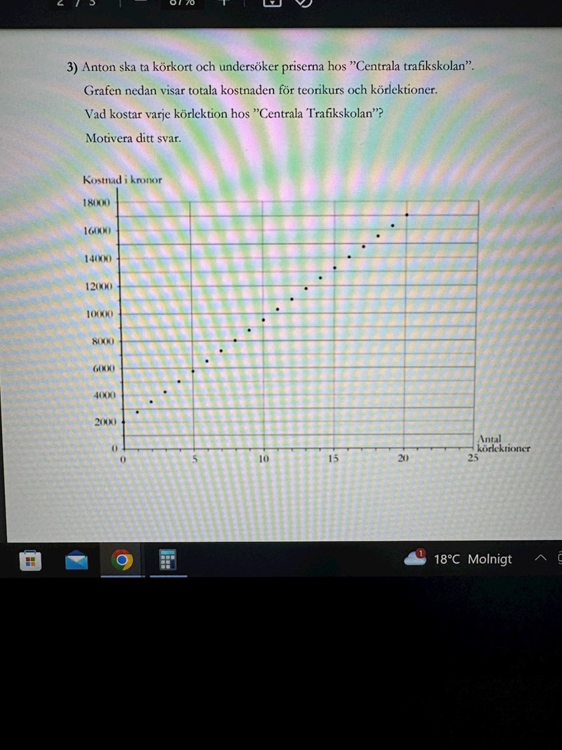 Ska räkna ut vad varje körlektion kostar och motivera mitt svar.