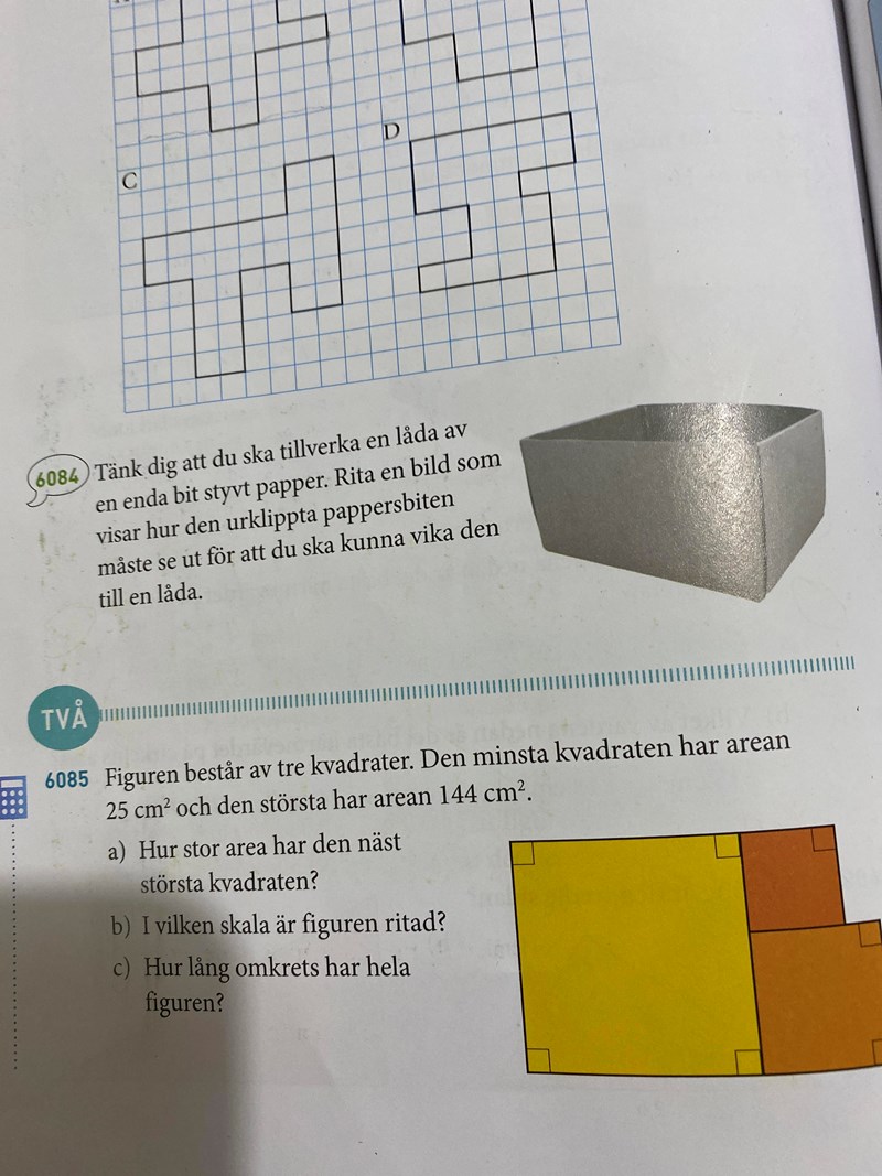 För att bestämma skalan bör du börja med att mäta någon av kvadraternas sidlängder.