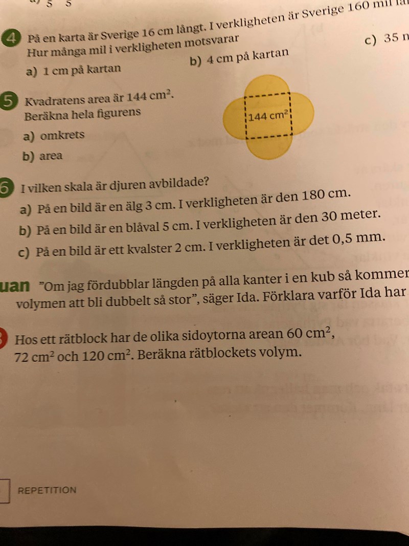 Dela verklighetens mått med bildens så får du skalan. På c) gör tvärt om, då blir det en förstoring (ex. 2:1 eller liknande istället för 1:2 eller liknande)