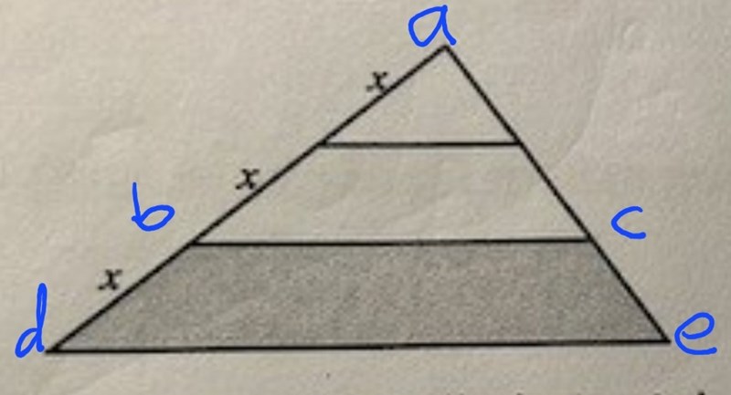 Om vi säger att arean av triangel ade är så är alltså arean av triangel abc .
