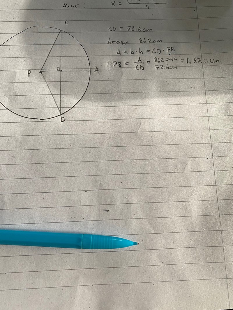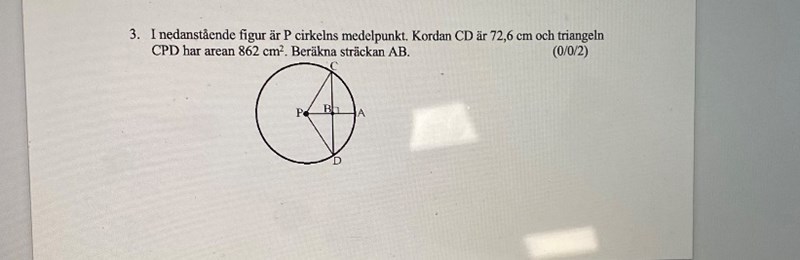 Kom så här långt .. Ska jag dra ett sträck från p rakt upp till cirkelns periferi och sedan en hypotenus till A?