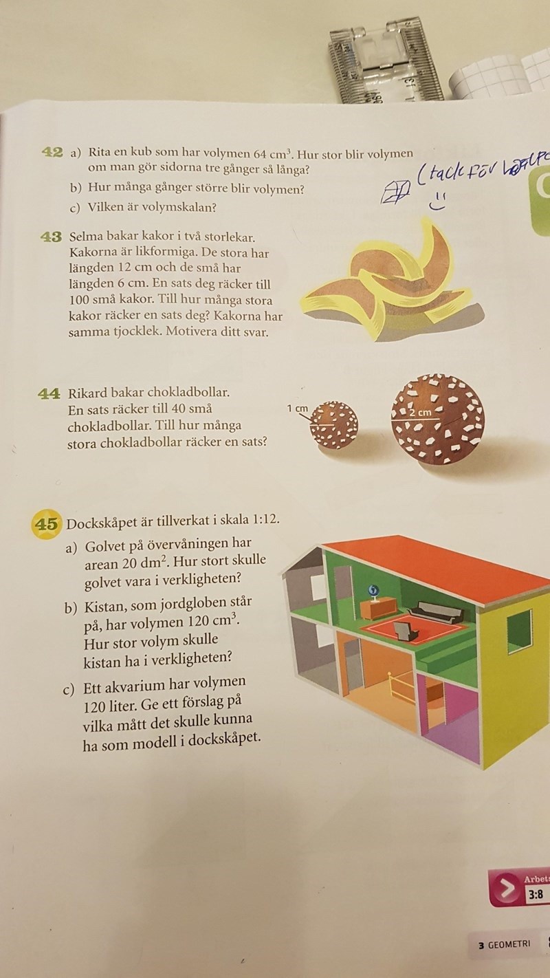 En kista har volymen 120cm^3 (skala 1:!2), hur stor volym skulle den ha i verkligheten? Hur får jag reda på själva längden, höjden och bredden när jag bara har volymen? Försökte allting.