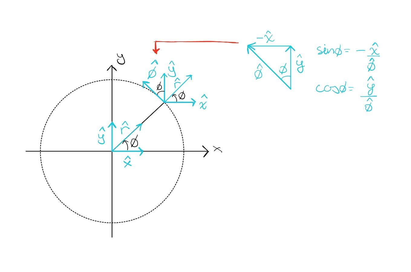 Nja, det blir lite knas. Tänk på att är vektorer (enhetsvektorer dessutom) så man kan inte dela den ena med den andra. Vad skulle det ens betyda?