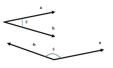 Räknar du skalärprodukt på de två vektorerna blir det +4, inte -4.