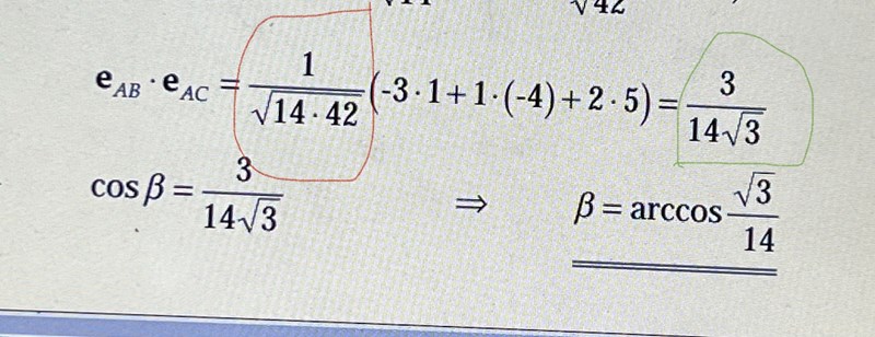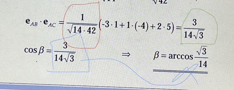 Och även den blåa undrar jag. Jag vet att man tar arccos för att få vinkeln, men varför blir det som det blir?