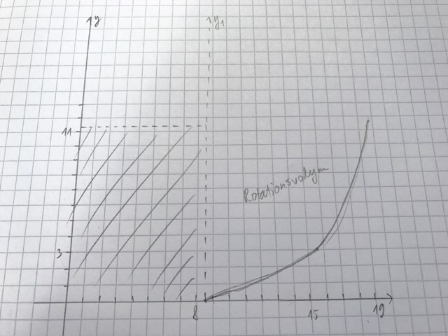I uppgiften ingick även att beräkna volymen med hjälp av rotation kring x-axeln.