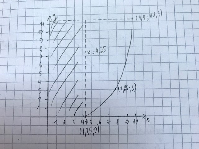 Jag har ritat upp grafen och lekt lite med funktionen y = Cx^4 och kommit fram till följande punkter: (19,8; 11,3), (15,3; 3) och (8,5; 0).