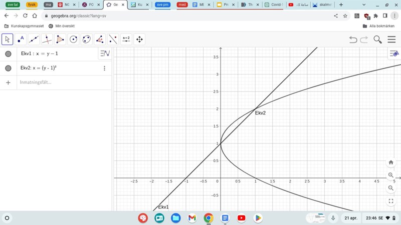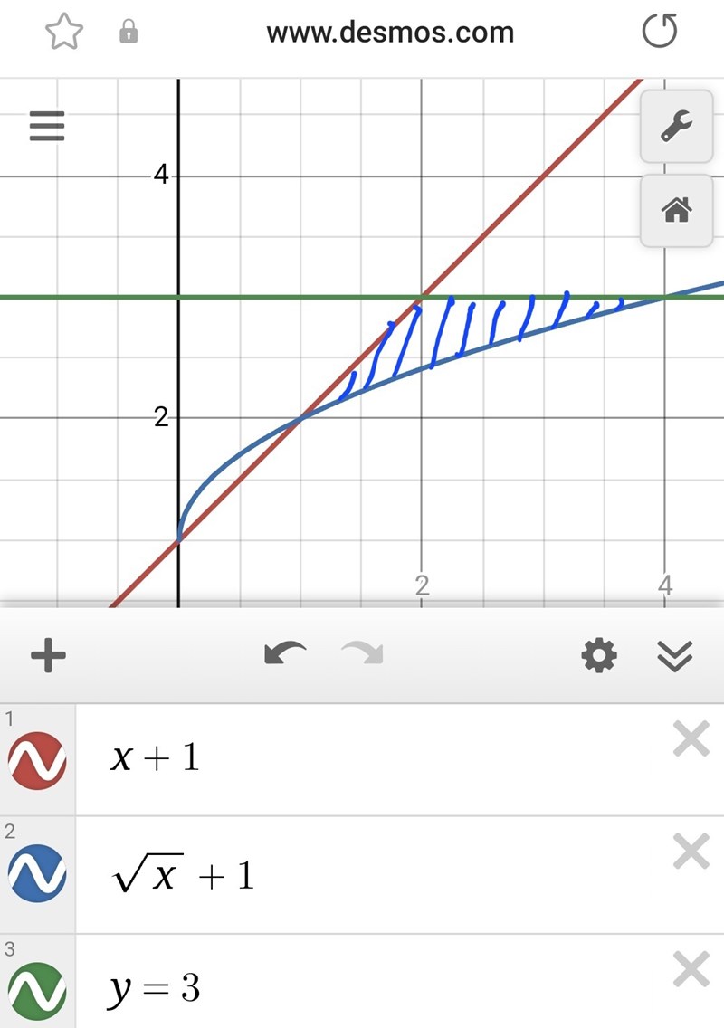 sen undrar jag hur de får y=x+1 och =x(1/2)+1  och rotationsgränserna 3 och 2?