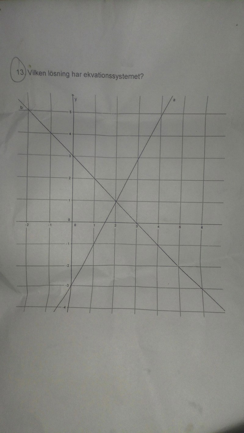 Det måste finnas mer information än att det är två linjer som korsar varandra, annars är uppgiften olösbar. Kan du läsa av värden i koordinatsystemet eller känner du till några punkter som linjerna skär genom? Lägg gärna upp uppgiften här i sin helhet, antingen som text eller bild.