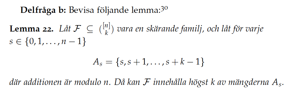Tack för svaret! Det fanns ingen premiss om att k < n/2, men om man utgår från det så är jag med på hur det går ihop :)