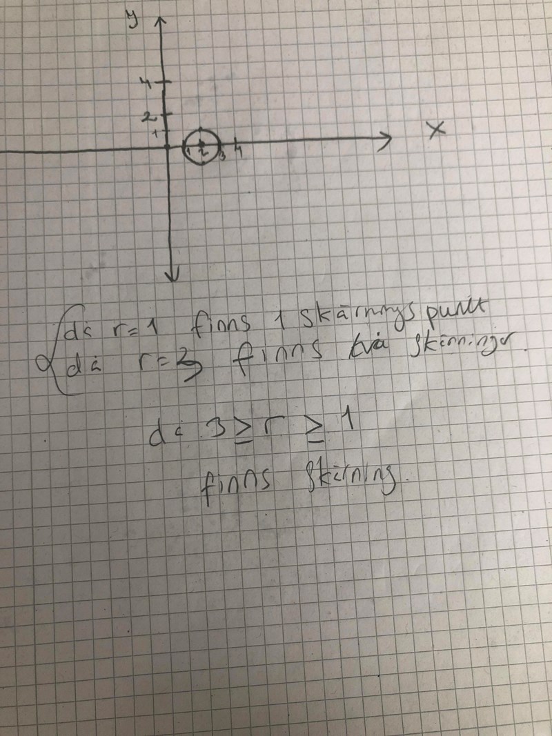 Därmed kan du visa att cirklarna tangerar varandra för de värden på radie du har kommit fram till - dvs en skärningspunkt