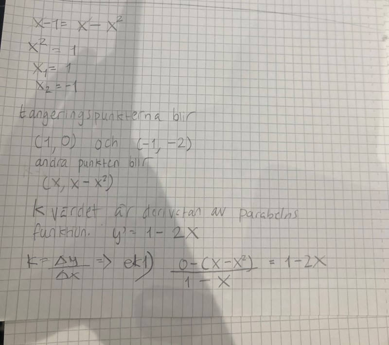 Så långt har jag kommit. Fastnar på sista steget . Hur ska jag hitta den andra tangenten. Ska jag använda samma k värde?