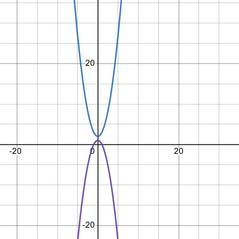 Den ena kurvan växer oändligt mycket uppåt och har en minimipunkt, den andra väser oändligt mycket neråt och har en maximipunkt. Ibland korar de varandra, ibland inte, det är detta du skall undersöka.