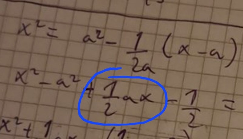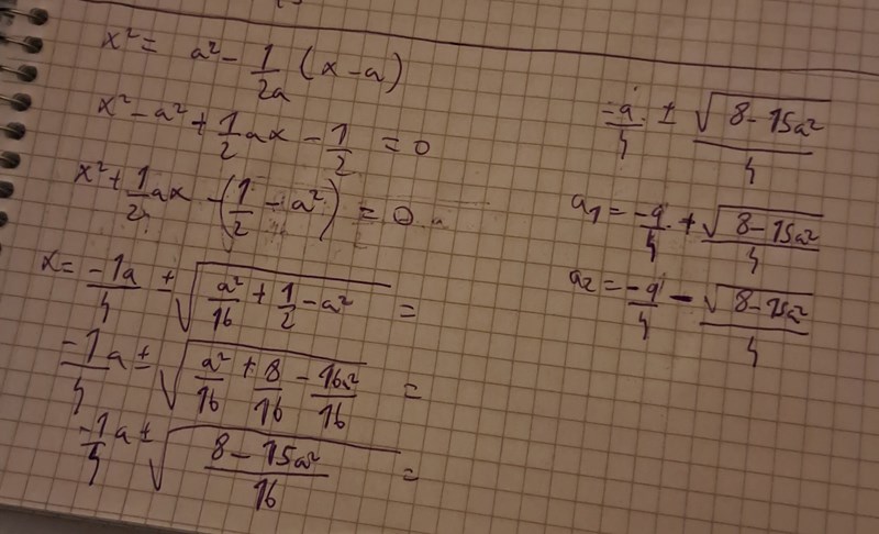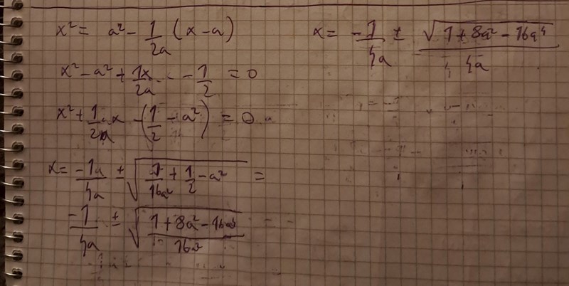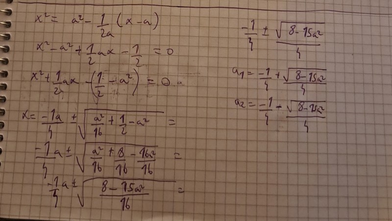 hm jag är ej säker på vad du menar här.. jag ska alltså lösa ut ekvationen x^2-a^2+(x-a)/2= 0? Nu hittade vi alltså en rot x=a och vi söker 2 rötter?
