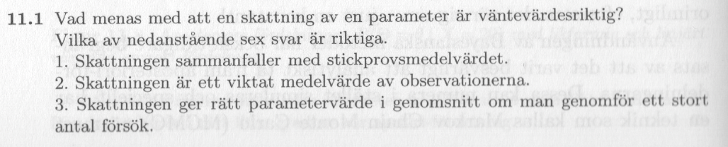 11.1 a) Vad menas med att en skattning av en parameter är väntevärdesriktig?