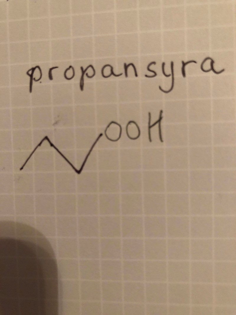 Hej, har jag ritat rätt skelettformel för propansyra?