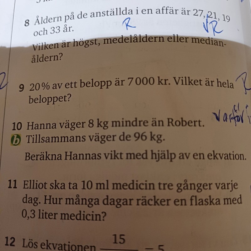 Först tar du ju reda på Roberts vikt, sedan subtraherar du dessa åtta år för att veta Hannas ålder.