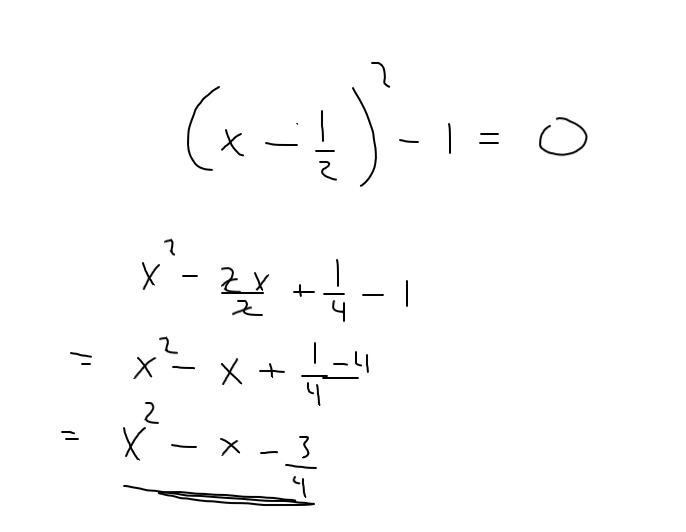 Man kan använda konjugatregeln på (x-1/2)2-1(x-1/2)^2-1 också.