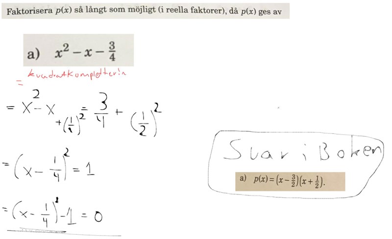 Men förstår du även varför (x-1/2)2-1 inte är en faktorisering av x2-x-3/4?