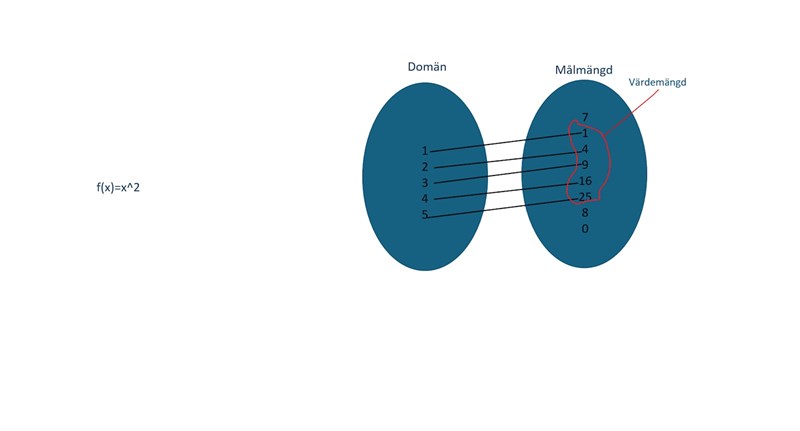 Skillnad mellan definitionsmängd, målmängd och värdemängd
