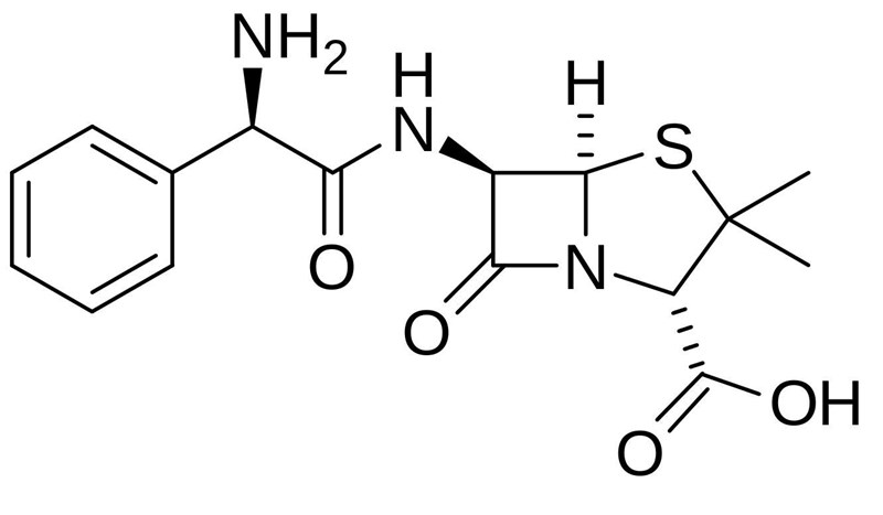 Skulle bensenringen vara en den i en större molekyl, t.ex. ampicillin nedan kan denna ring beskrivas om en fenyl-substituent till den större molekylen.