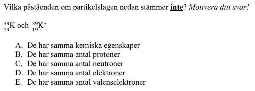 ChristopherH skrev:När elektroner ändras så kommer kemiska egenskaper ändras, dessutom om det sker en kemisk förening också enligt periodiska systemet och kursboken. Men en atomjon är inte riktigt en kemisk förening men om dem var bunda atomjoner så har jonerna olika färg, smak, kan hydratisera och massvis med saker som är beroende av massvis saker.