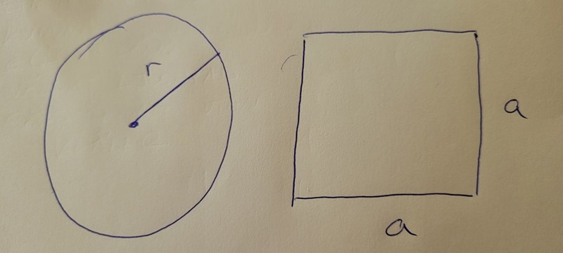 Ja, jag ritade först sen räknade jag cirkelns area samt kvadratens area.