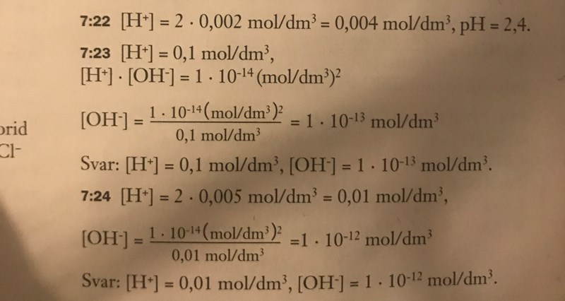 Det är tryckfel på 7.22 och 7.24. Du ska inte multiplicera med 2, då varje syramolekyl ger upphov till en vätejon (oxoniumjon) i lösningen.