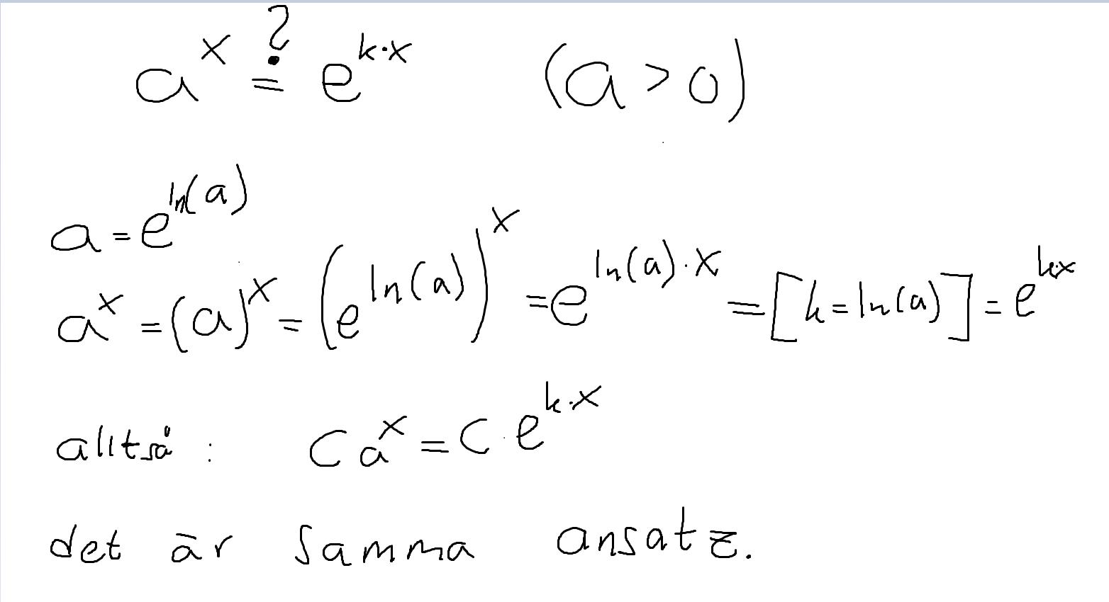 Jag förstod inte varför tog dem exponential funktion y=Ce^kx.. Jag kan inte hitta förklaring nånstans. Jag tänkte att exponential funktion är y=Ca^x🥺