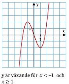 Skrev fel menade en x>1 och inte noll. Men det borde stå x<-1 och x>1, pga att då värdet är 1 eller -1 då är lutningen noll, alltså växer/minskar inget. Eller?