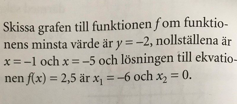 Du vet att funktionens graf skär linjen y = 0 vid x = -5 och x = -1.