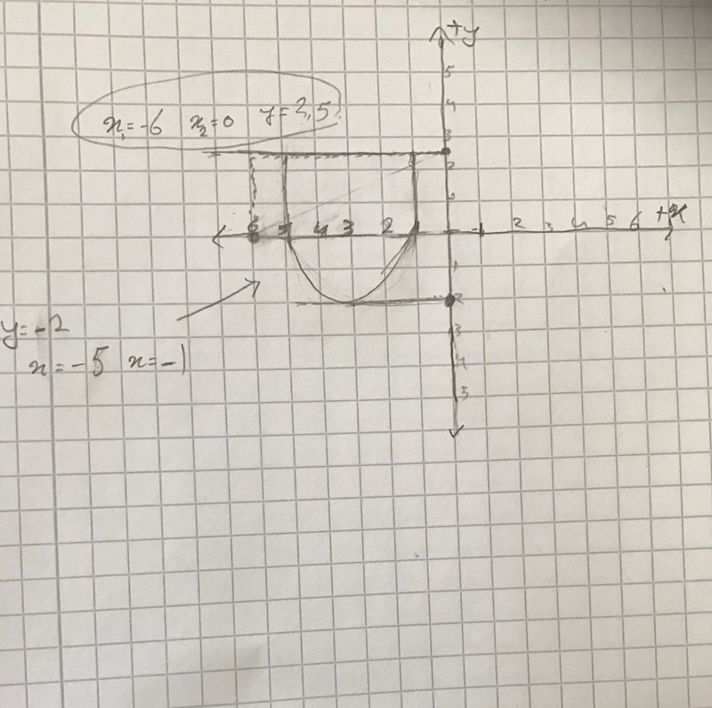 Nej, f(-6) = 2,5. Det jag undrar över är vilket x-värde som ger f(x)=-2 (om man utgår från attdet är en andragradsfunktion).