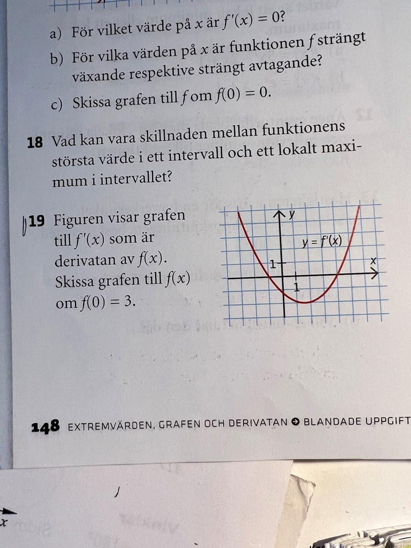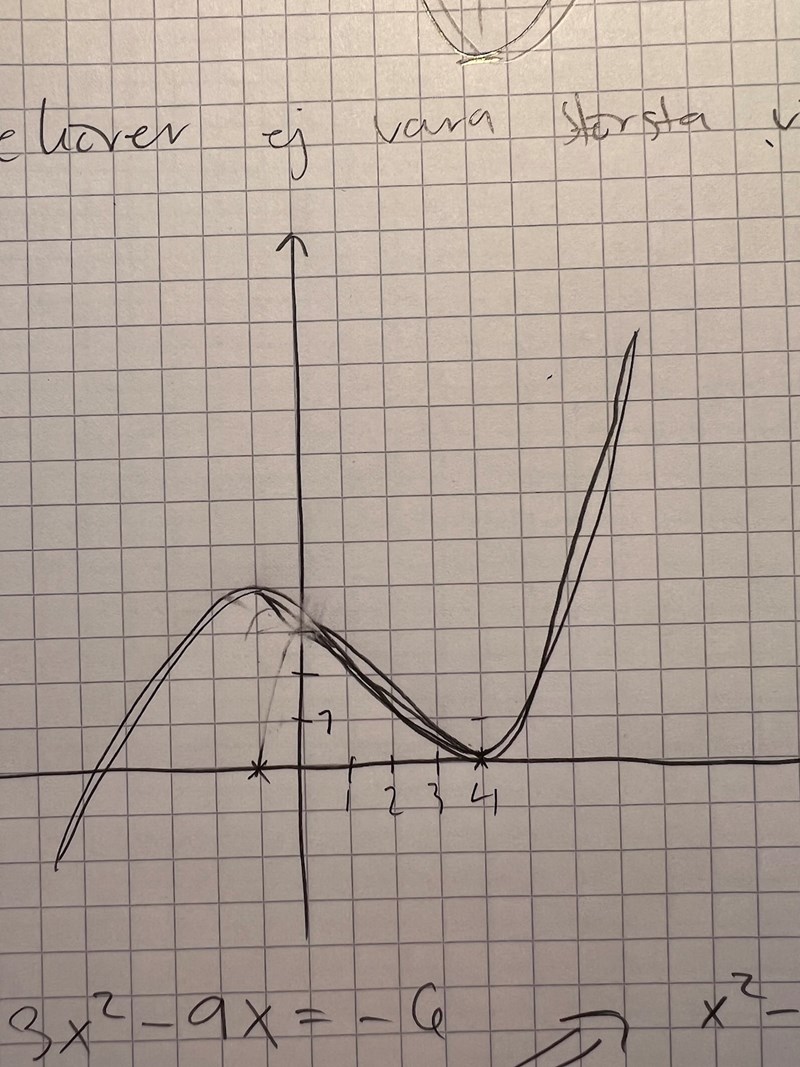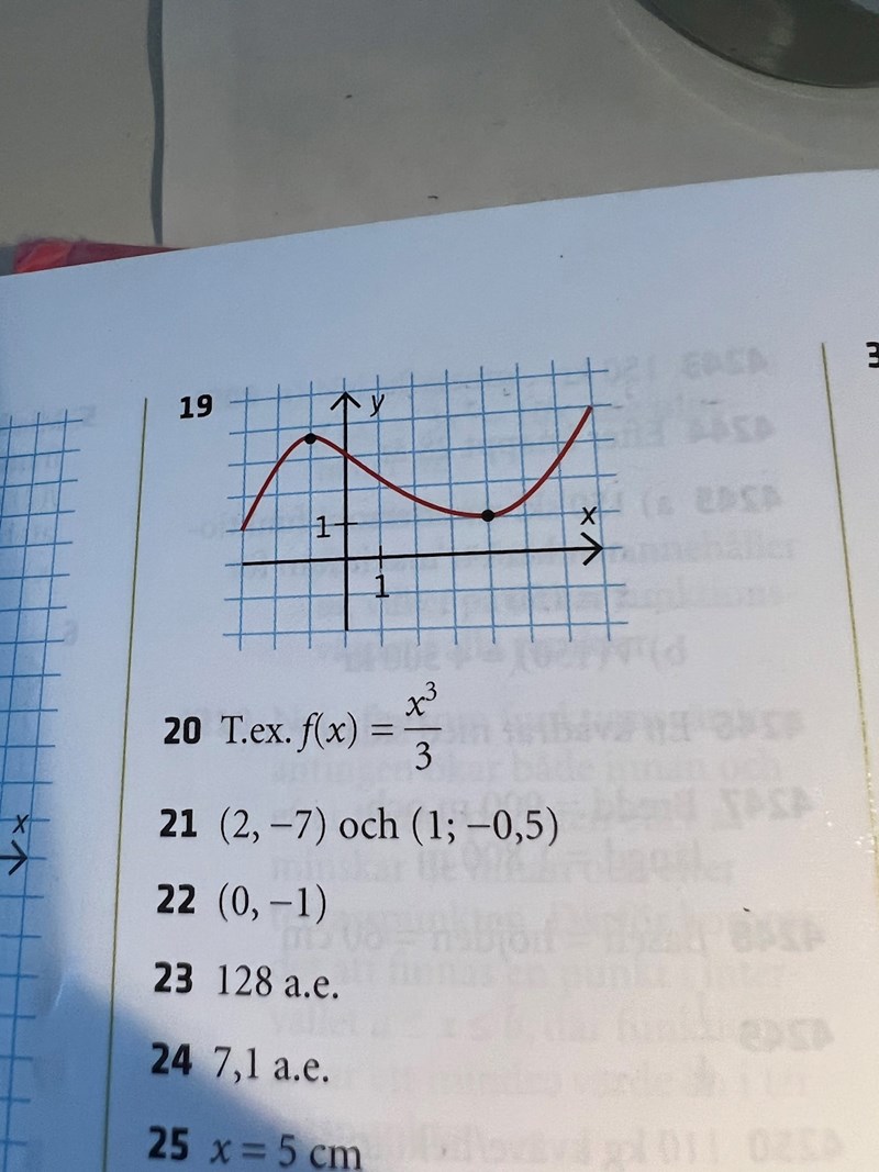 Hej! Har en fråga om uppgift 19. Hur vet man vad minimipunkten samt maximipunkten har för y-värde? Eller kan det ha vilket y-värde som helt utifrån informationen man få i uppgiften? Och att facit då är ett exempel på en skiss?