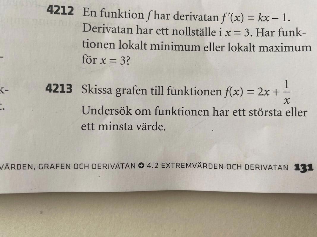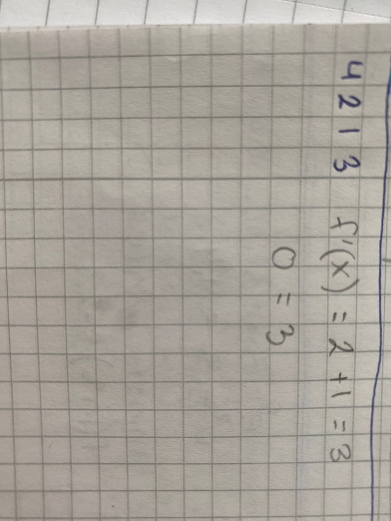 Hej! När jag försöker lösa följande uppgift genom att ta fram derivatans nollställen går jag att 0= 3… vart blir det fel?