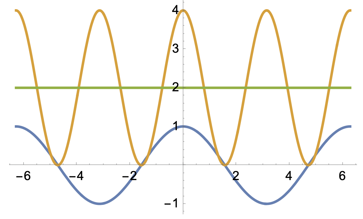 2*cos(0) skär y-axeln vid y=2. Samma är det för 2*cos(2*0).
