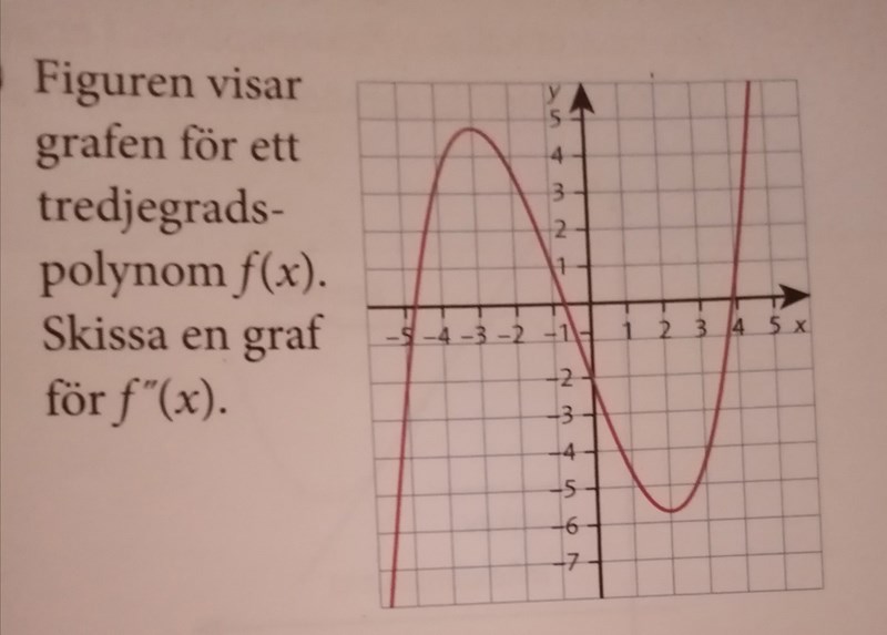 Jag vet hur man skissar förstaderivatan för en andragradsfunktion men jag vet inte hur man göra det för en tredjgradsfunktion och hur man skissar f''(x) från f'(x)