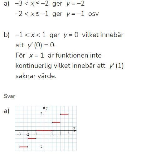 En funktion definieras så att y är heltalsdelen av x. T ex x=3,12 ger y=3.