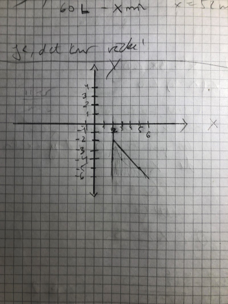 Hej ursäkta att jag återupllivar denna tråd igen men har en fundering. Vad är det smartatste att göra när man får en sådan här uppgift. Jag tänkte mig direkt att skriva det som en ekvation, men hur skulle den se ut? En anna inde jag hade varatt dra ett lodrätt sträck på 2 i x axeln.