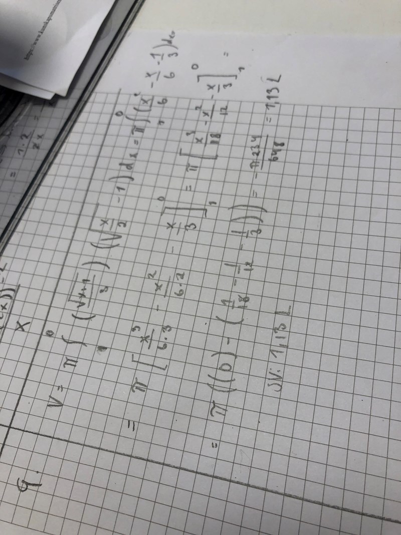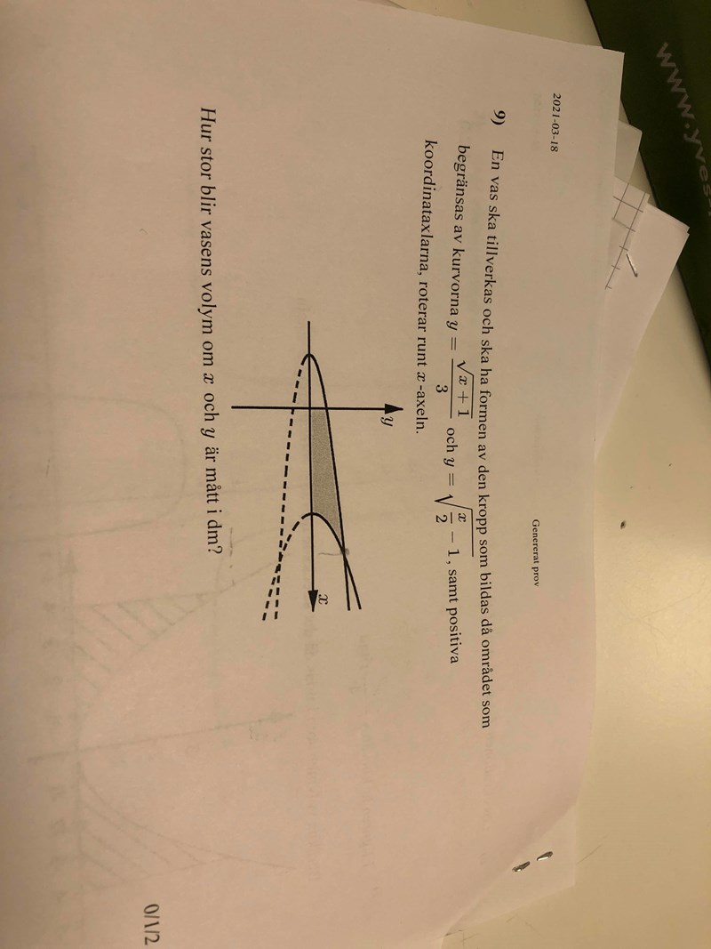 Sedan kan du försöka beräkna två rotationsvolymer. Dra bort den ena från den andra så får du volymen det frågas efter.