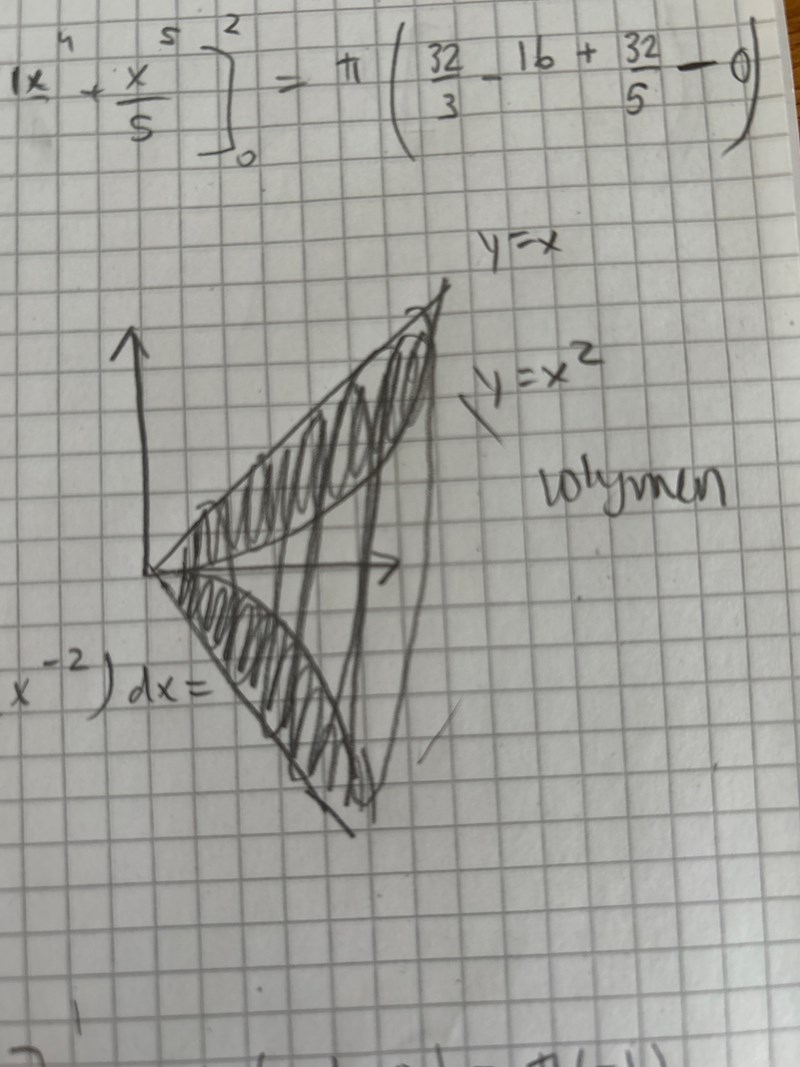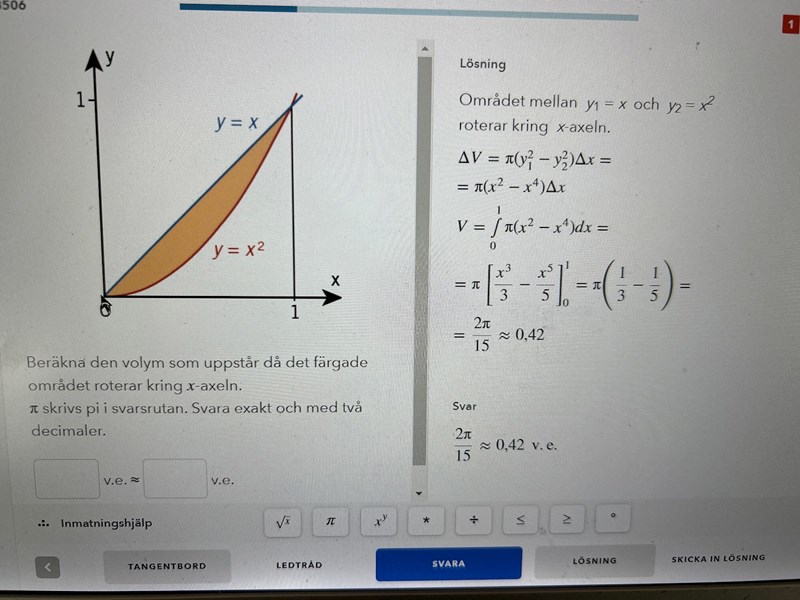 Jag försöker förstå bilden av vad som händer när den roteras. Är det alltså som det jag ritat och man vill beräkna volymen på det jag fyllt i med mörkt bara?