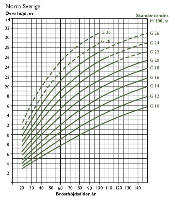 Hej! Jag har en liten annorlunda fråga som kanske inte hör till detta forum, men jag skulle i varje fall behöva hjälp att förstå hur jag läser av en höjduvecklingskurva. Jag har t.ex höjden 25 m och brösthöjdsålder 23 år, men hur tar jag reda på ståndortsindexet (som läses av på y-axeln)?