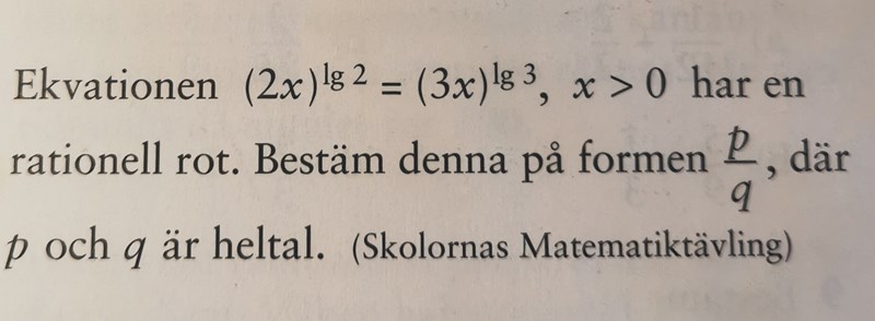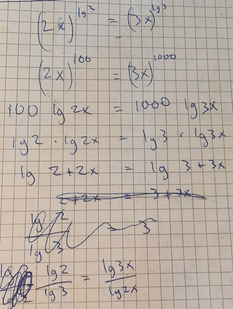 Det är i stället så att lg100=2, men det hjälper inte dig. Prova i stället att logaritmera båda led och jobba med räkneregler för logaritmer.