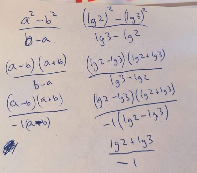 Om det står a2-b2b-a\frac{a^2-b^2}{b-a}, vet du vad du ska göra då?