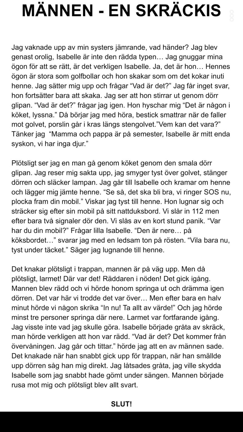 Hej! Vi har fått en uppgift i skoan att skriva en skräcknovell. Det står helt stilla i mitt huvud, några bra idéer ?