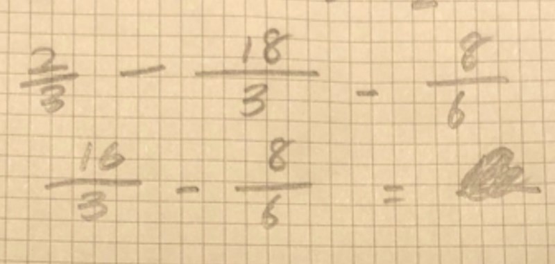 Fel 1, 2/3 - 18/3 = -16/3, inte 16/3: