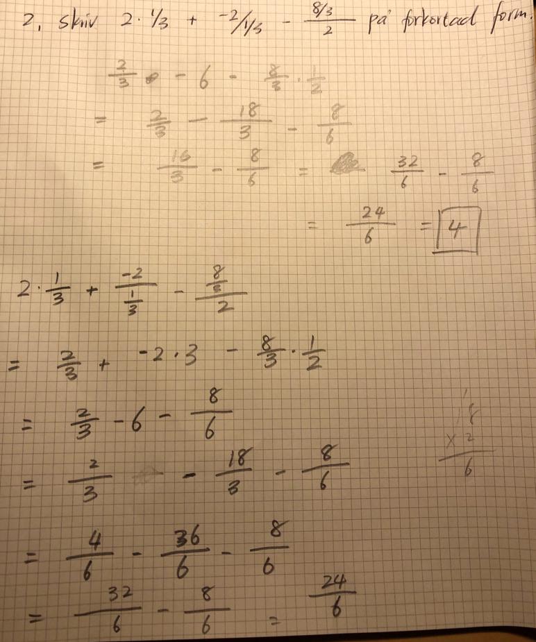 4/6-(36/6)-(8/6) kan ju inte vara plus 32 eller? det måste vara -32/6. Går du också den förberedande mattematik kursen? Har för mig att jag gjorde denna ganska nyligen
