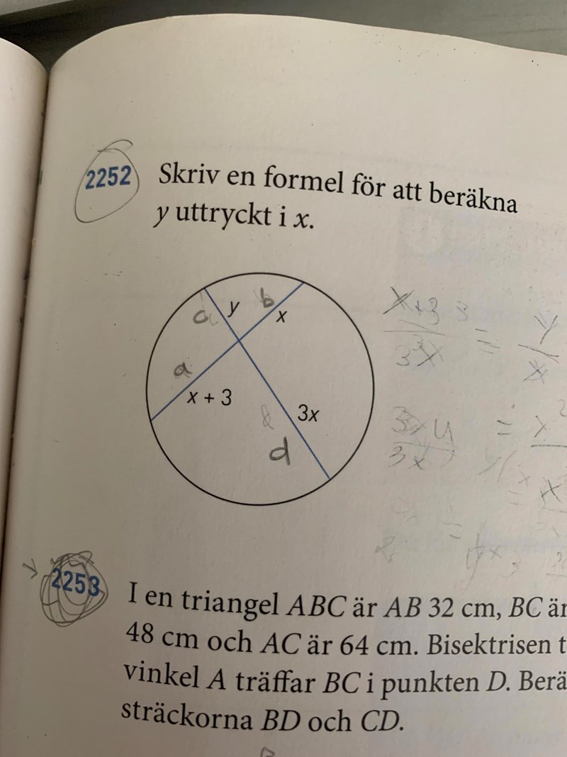 hur glr man här? jag tänkte ab=cd men då fick jag (x^2+3x)/3x