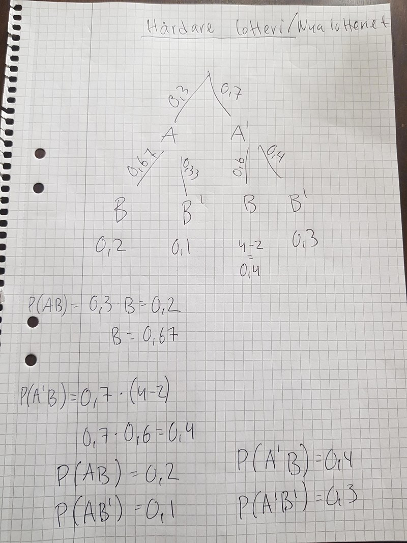 Nu har jag gjort om träddiagramet på det nya lotteriet (och även ansträngt mig för min taskiga handstil 😂 )