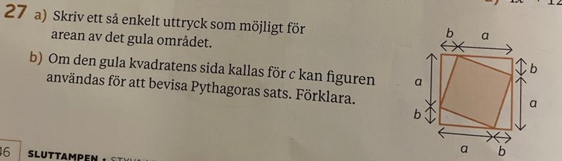 efter jag tar arean av hela det vita och gula området området = ab^2
