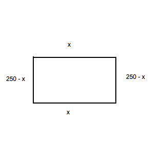 det är en rektangel som avslöjar att långsidan är 250-x och kortsidan är x. Svaret blir 500 men förstår inte hur?
